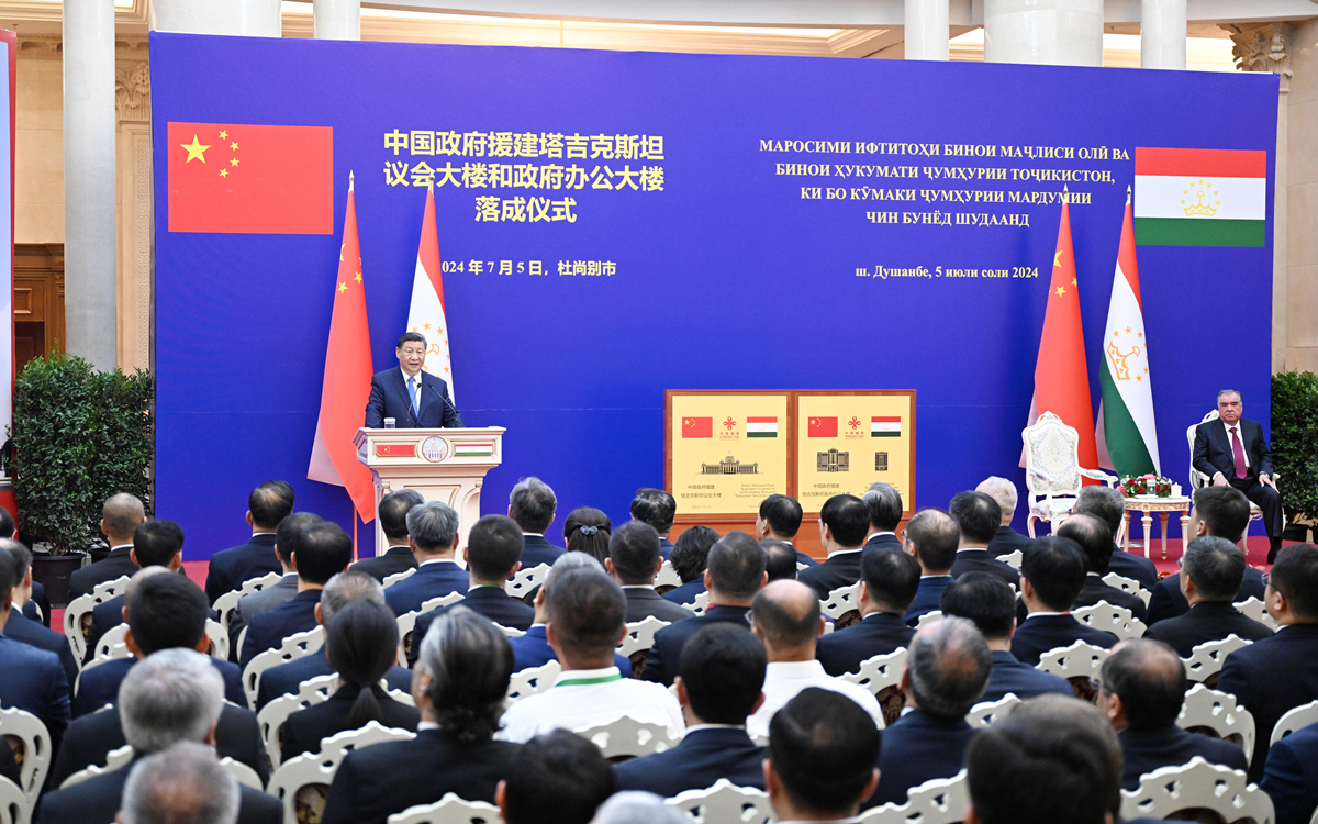 習近平同塔吉克斯坦總統拉赫蒙共同出席中方援塔議會大樓和政府大樓落成儀式