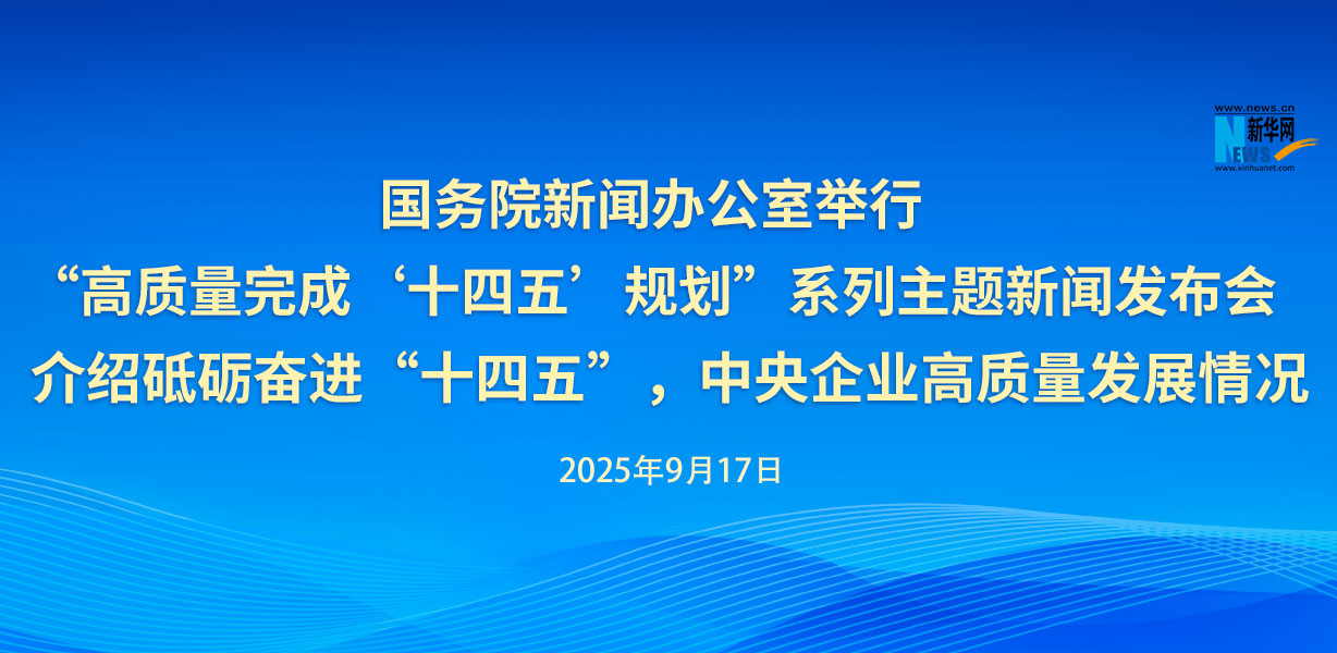國務院新聞辦公室定于2025年9月17日(星期三)上午10時舉行“高質量完成‘十四五’規劃”系列主題新聞發布會,請國務院國有資產監督管理委員會主任張玉卓介紹砥礪奮進“十四五”,中央企業高質量發展情況,并答記者問。
