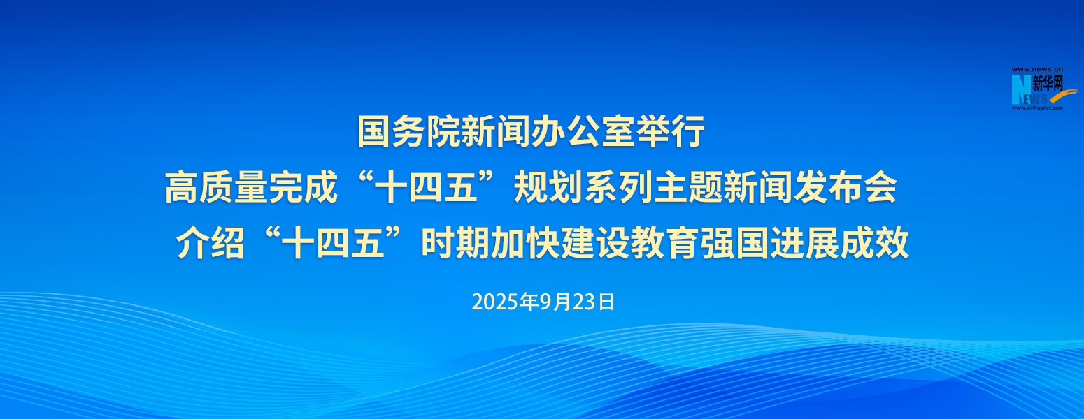 國務院新聞辦公室定于2025年9月23日(星期二)上午10時舉行“高質量完成‘十四五’規劃”系列主題新聞發布會,教育部部長懷進鵬介紹“十四五”時期加快建設教育強國進展成效,并答記者問。