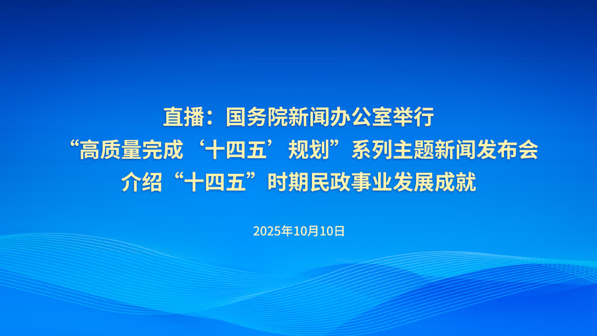 國務院新聞辦公室定于2025年10月10日(星期五)上午10時舉行“高質量完成‘十四五’規劃”系列主題新聞發布會,請民政部部長陸治原介紹“十四五”時期民政事業發展成就,并答記者問。
