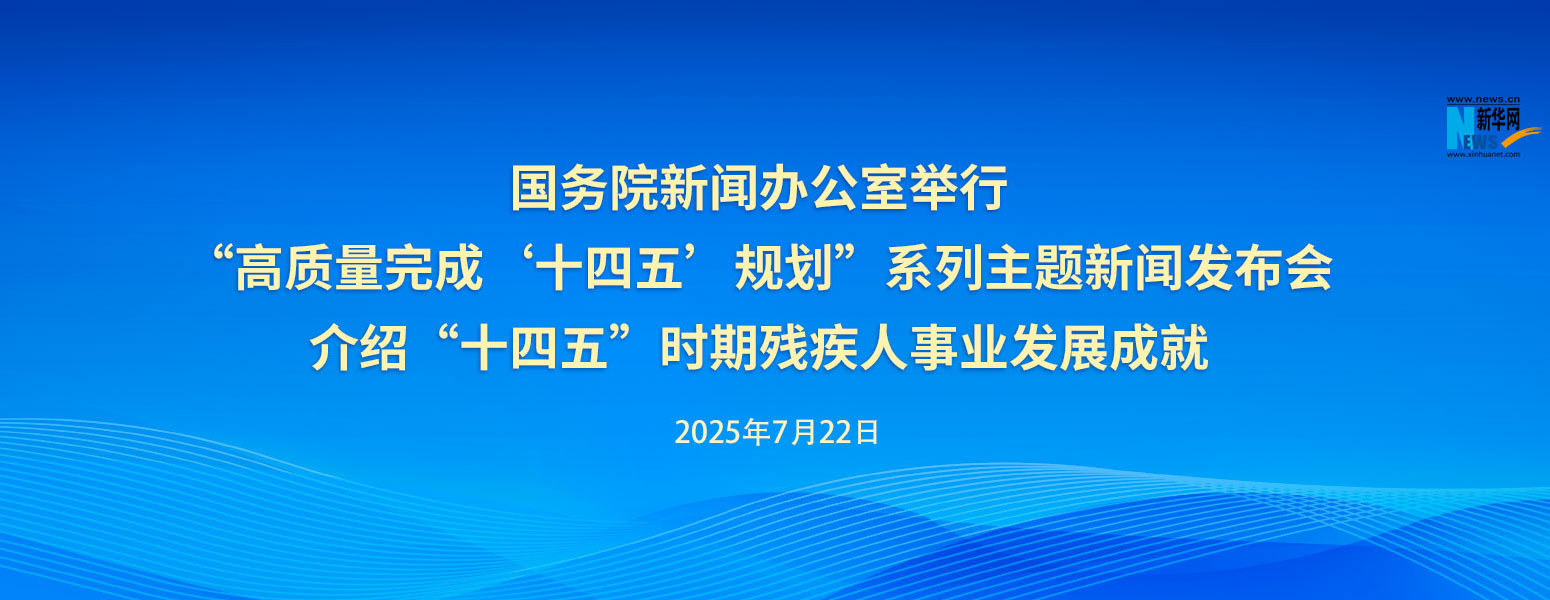 國務院新聞辦公室于2025年7月22日(星期二)上午10時舉行“高質量完成‘十四五’規劃”系列主題新聞發布會,請中國殘聯主席程凱,中國殘聯黨組書記、理事長周長奎介紹“十四五”時期殘疾人事業發展成就,并答記者問。