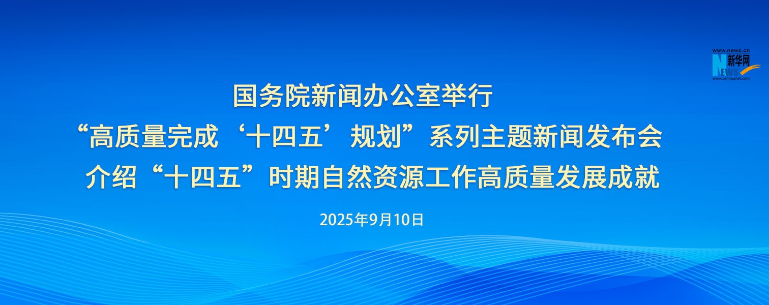 國務院新聞辦公室定于2025年9月10日(星期三)上午10時舉行“高質量完成‘十四五’規劃”系列主題新聞發布會,自然資源部部長、國家自然資源總督察關志鷗,國家林草局(國家公園管理局)局長劉國洪介紹“十四五”時期自然資源工作高質量發展成就,并答記者問。