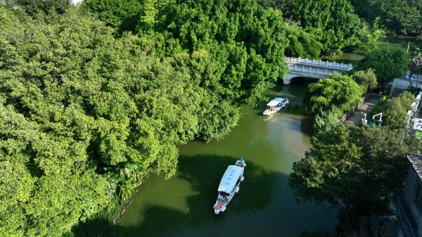 乘坐“福舟”游船,劃開碧綠的福州白馬河水面,看著兩岸高大的榕樹伸出樹冠,遮住午后的酷暑,品一杯茉莉花茶,讓清香在唇齒間蕩漾開來,滿滿的“松弛感”讓人忘卻了此時還置身鬧市之中。