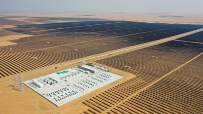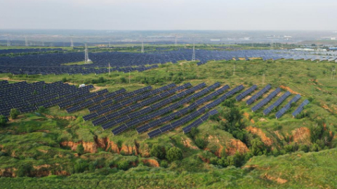 沙漠深處,一張張藍色光伏板如波浪般向天際延伸,它們靜靜地吸收著炙熱的陽光,將不毛之地變成巨大的“綠色電站”。