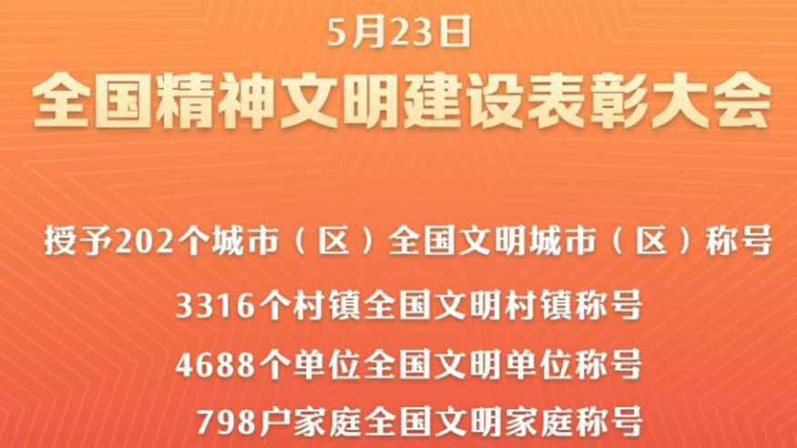 202個全國文明城市(區)、60名(組)全國道德模范等受表彰