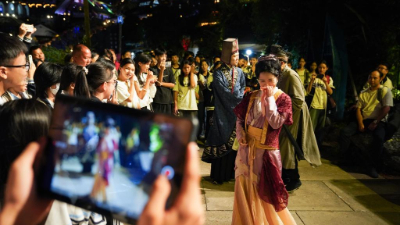 在長安十二時辰主題街區記者感受唐風唐韻