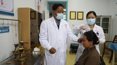 適逢秋冬之交,甘肅省甘南藏族自治州天氣陰冷。一走進碌曲縣藏醫院,熱烘烘的暖氣混合著草藥的香氣驅散了寒意,主任醫師看照加正在給患者脈診。脈診是一種藏醫學診斷方法,通過切按人體脈搏分析脈象判斷臟腑功能及疾病性質,與中醫的號脈相似。
